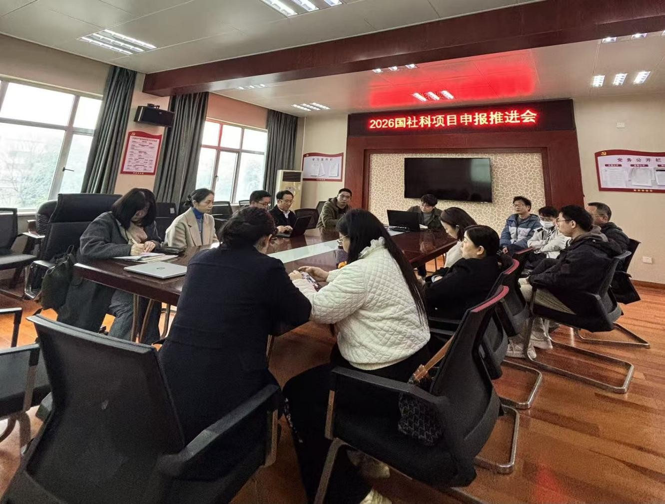 3月26日下午4:30,学院在B308会议室召开2026年度国家社科基金项目申报推进会。会议由副院长李忠民主持,院长刘锋及全院教授、副教授、博士等教学科研骨干参会,围绕新一轮国家社科基金项目申报工作展开深入研讨。