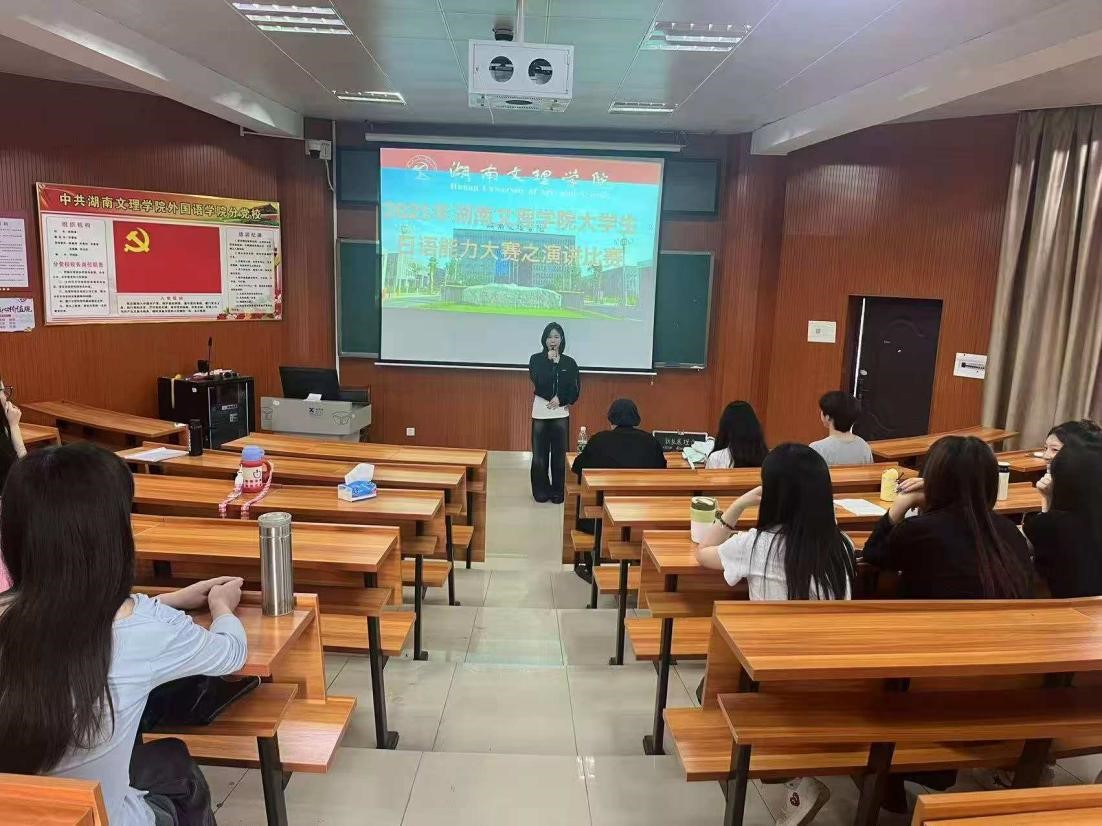 为进一步促进大学生日语演讲以及写作、翻译、思辨、跨文化交际等能力的提升,促进日语学科发展,促进人才培养质量的提升,同时做好2025年外研社“国才杯”理解当代中国全国大学生外语能力大赛、湖南省大学生日语能力大赛参赛选手的选拔工作,5月27日、28日两天,我院举办了“2025年湖南文理学院大学生日语能力大赛”的日语翻译比赛、日语写作比赛、日语演讲比赛。本次比赛经过激烈角逐,评选出各项比赛的各年级组一二三等奖。