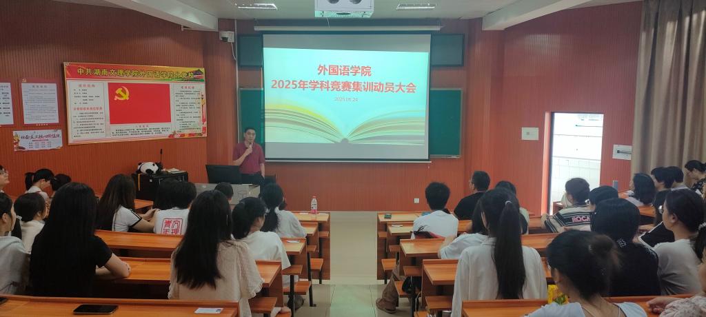 6月24日下午,学院在D302会议室召开2025年度学科竞赛集训动员会。会议由外国语学院副院长李忠民主持,院长刘锋教授、各赛事指导老师和参加集训的同学出席了本次动员会。