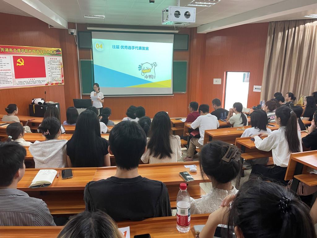 李忠民副院长介绍了今年下半年要举行的四个学科竞赛赛事:英语能力大赛、日语能力大赛、师范技能大赛、跨文化能力大赛,详细解读了各赛事的赛制、比赛流程和时间节点。