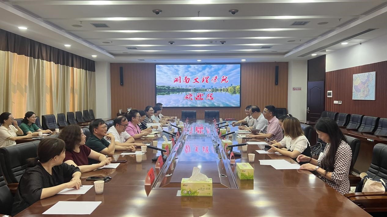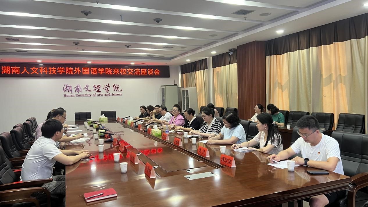 2025年7月6日上午,湖南人文科技学院外国语学院院长张点一行来我校外国语学院考察交流。座谈会在逸夫楼A305会议室举行,我院党政领导班子成员及各系主任参加座谈。