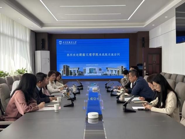 在西安外国语大学英文学院,调研组重点学习了该校在英语专业建设与大学英语教学改革方面的创新经验。英文学院在学科建设、师资梯队、人才培养体系等方面形成了系统化布局,特别是在专业内涵发展与教学改革协同推进方面成效显著。座谈会上,双方围绕专业建设、师资引育、人才培养质量提升、教学资源共享等核心议题展开深入交流。该校在学生工作体系与特色育人举措方面的成熟做法,也为我院优化学生管理服务提供了有益参考。