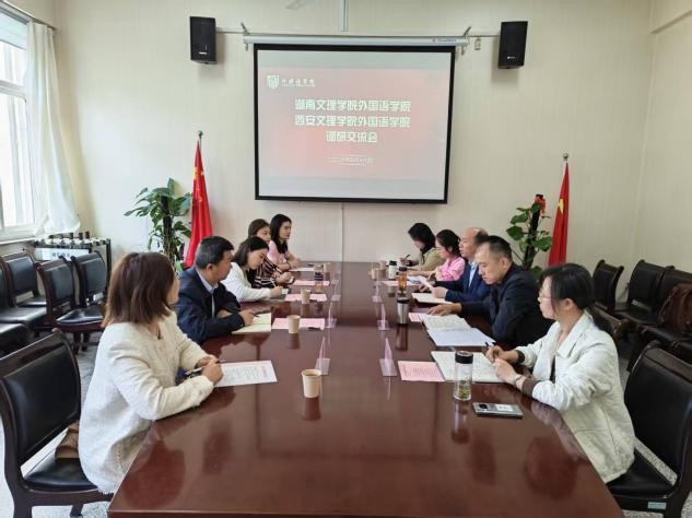 (与西安文理学院外国语学院相关负责人座谈、合影)