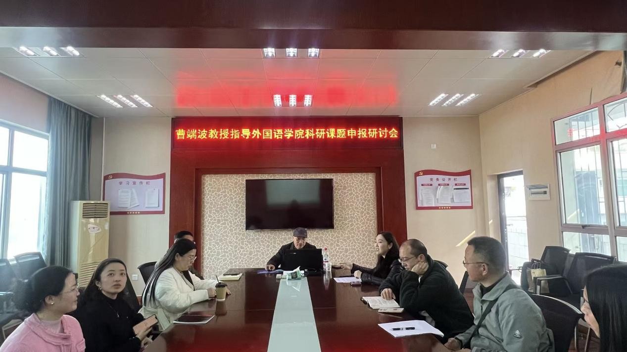 为切实提升学院教师科研课题申报质量,2026年1月14日下午2时30分,外国语学院在三楼会议室成功举办科研课题申报专题研讨会。本次会议特别邀请怀化学院曹端波教授莅临指导,学院院长刘锋教授、副院长范丽娜教授及部分博士教师参加了此次研讨。