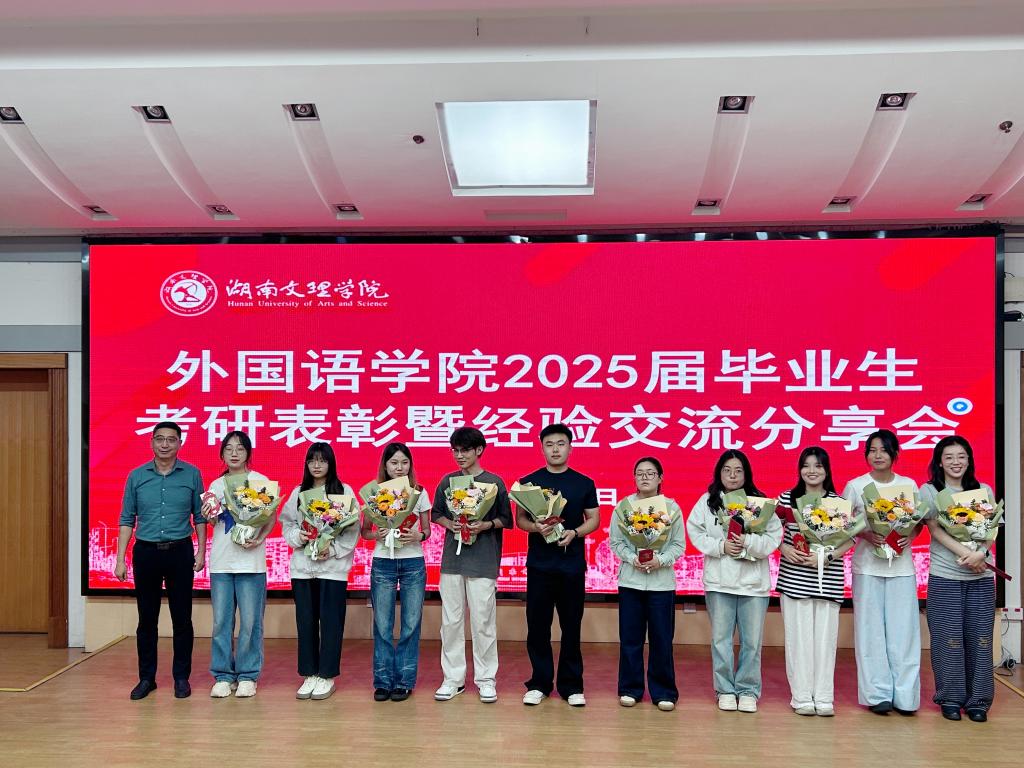 5月8日晚,外国语学院在学校图书馆报告厅召开2025届毕业生考研表彰暨经验交流分享会。学院院长刘锋、党委副书记李春桂、辅导员、2022级全体学生和2023级、2024级部分学生参加大会。李春桂主持会议。