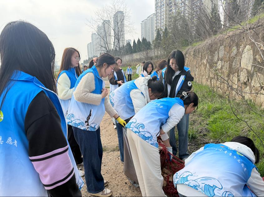 湖南文理学院生态环保护鸟营志愿者进行巡河净滩