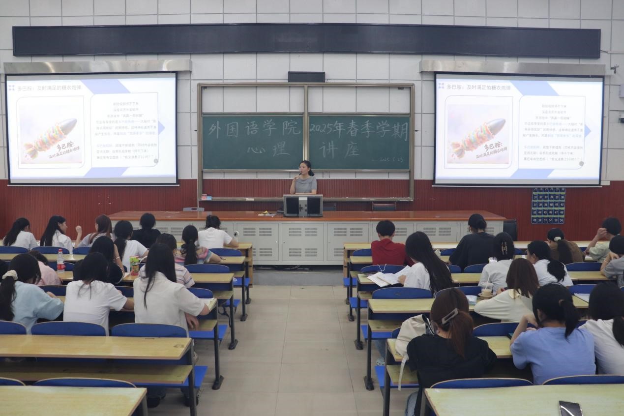 为增强学生心理调适能力,营造积极向上的成长氛围,5月23日下午,外国语学院在T3-D301教室开展2025年春季学期心理讲座。本次讲座由学院辅导员朱天鹏老师主持,学校心理健康教育中心张少怡老师主讲,大二全体学生及大三心理委员、信息员参加。