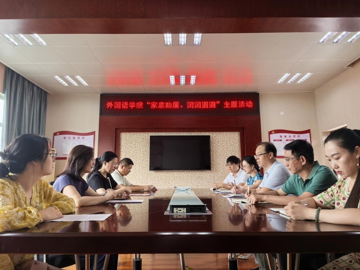 为深入贯彻落实习近平总书记关于家庭家教家风建设的重要论述,进一步加强领导干部家庭廉洁教育,6月27日下午,外国语学院组织开展“家庭助廉、团团圆圆”主题活动。学院领导干部及配偶共同参与,通过专题学习和实地参观,筑牢家庭“防腐墙”,以清纯家风涵养清朗党风政风社风,推进清廉单元建设。