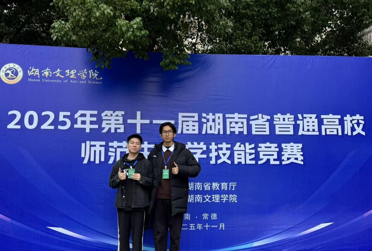 近日,由湖南省教育厅主办、我校承办的2025年第十一届湖南省普通高等学校师范生教学技能竞赛圆满落幕。我院学子表现优异,由郭炜峰老师指导的英语22101班刘洋同学荣获一等奖,英语23101班吴宗翰同学荣获二等奖。